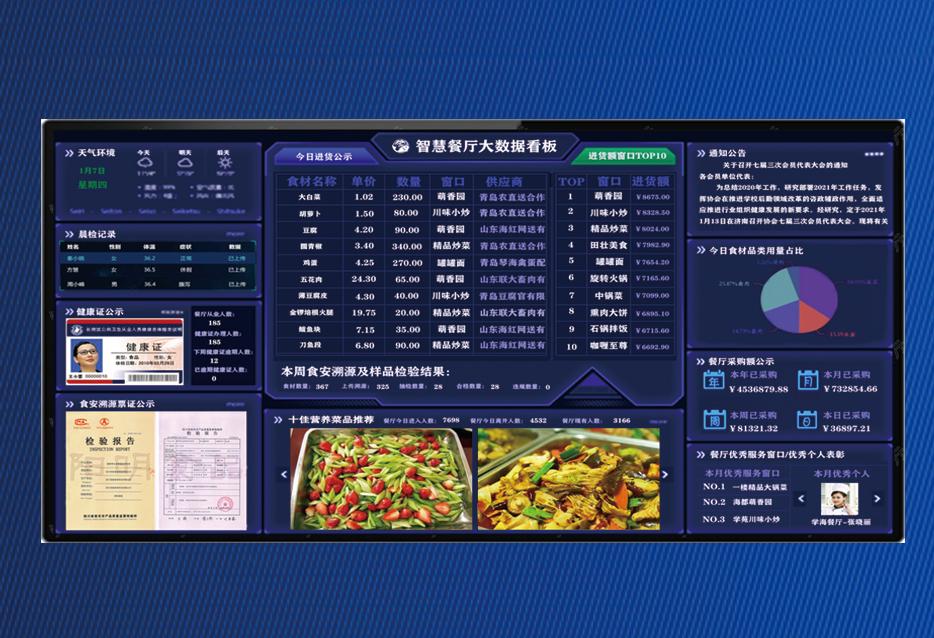我司在高校智慧餐厅领域深入院校管理实际情况,对餐厅自营、联营、目标考核等多种管理模式进行详尽的需求分析,通过六年多行业经验积累,实现了饮食中心、餐饮服务监管、餐厅运营公司、食材供应商及餐厅各类仓库信息化平台管理,对师生饮食食品安全实现了无盲区全程溯源,为师生的饮食安全保驾护航,为后勤管理提能增效。