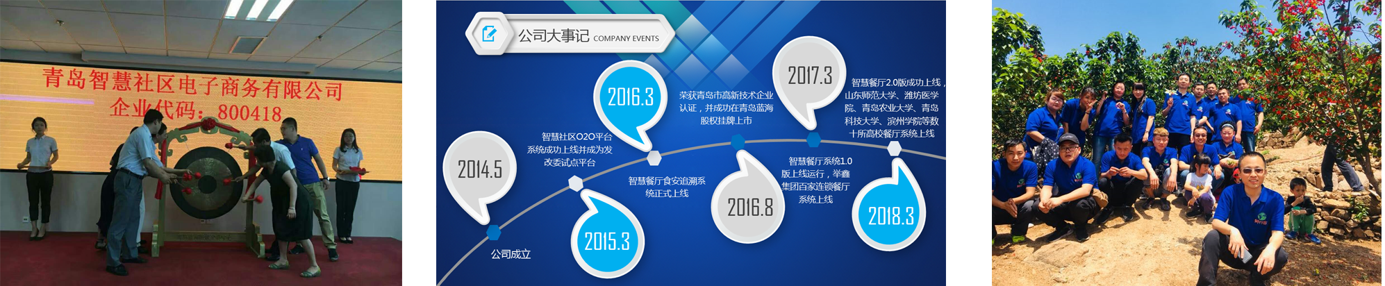 青岛智慧社区电子商务有限公司成立于2014年春天,公司始终坚持让食品更安全、让运营更简化、让管理更智慧的服务宗旨,致力于打造提升食材流通效率与食品安全防控能力的院校智慧餐厅供应链服务平台;基于公司业务的迅速发展和实力的不断增强,于2016年获批为国家高新技术企业,并于当年成功登陆蓝海股权资本市场。 我司在高校智慧餐厅领域结合院校管理实际情况,对餐厅自营、联营、目标考核等多种管理模式进行深入的需求分析,实现了饮食中心、餐饮服务监管、餐厅运营公司、食材供应商及餐厅各类仓库信息化平台管理,对师生饮食食品安全实现了无盲区全程溯源,为师生的饮食安全保驾护航,为后勤管理提能增效。