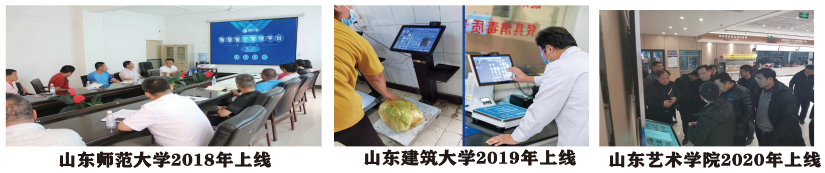 由我司自主研发的鲜行客高校智慧餐厅运管平台,让高校餐厅管理实现无纸化办公,大数据化决策和全程数字化管理。目前,我司高校智慧餐厅系统已经技术成熟,在山东师范大学、山东艺术学院、山东科技大学、山东建筑大学、山东交通学院、山东第一医科大学、曲阜师范大学、济宁医学院、山东政法学院、山东第二医科大学、泰山护理学院、青岛科技大学、青岛农业大学、青岛酒店管理学院、青岛工学院、滨州医学院、东营职业学院、菏泽家政职业学院、山东航空学院、康复大学、临沂大学、临沂科技职业学院等百余所院校得到后勤膳食中心的一致好评。